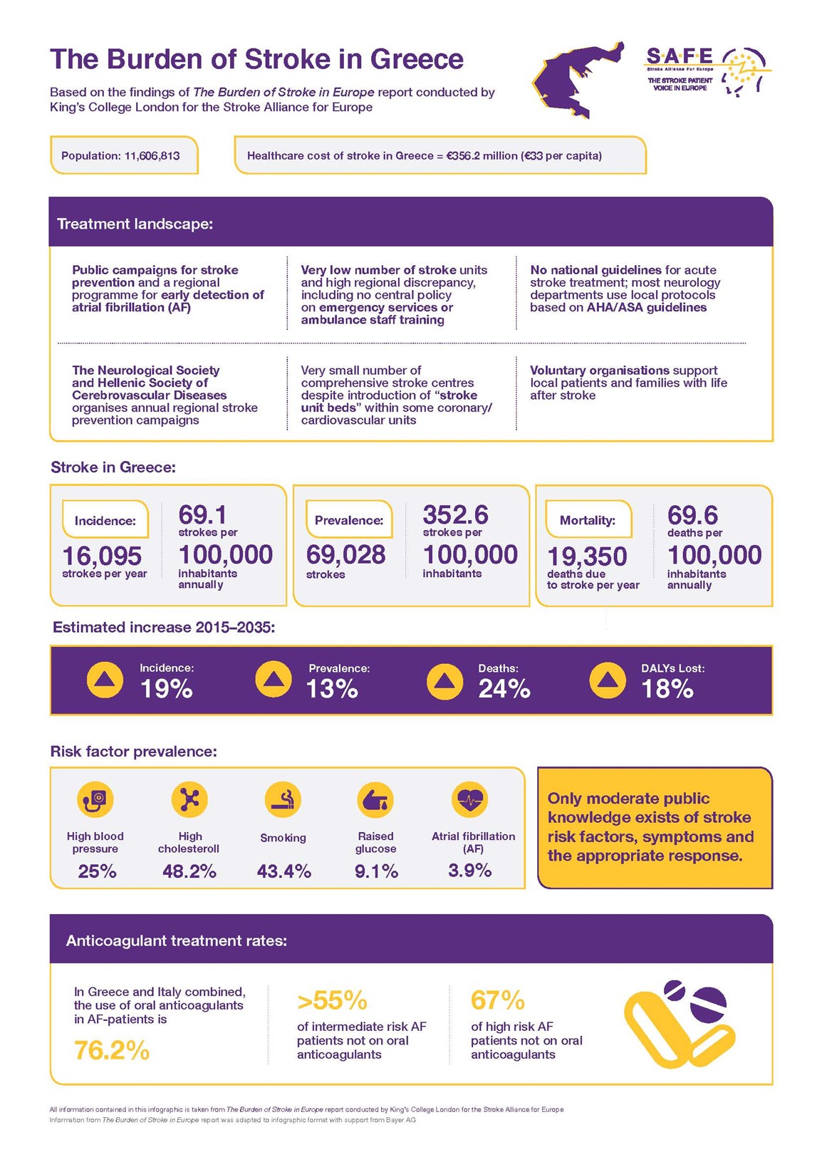 Στην Ελλάδα εκτιμάται ότι περίπου 19350 συνάνθρωποι χάνουν την ζωή τους ετησίως λόγω εγκεφαλικού επεισοδίου, σε σύνολο 69028, με τους επιζώντες να έχουν σημαντική μείωση της ποιότητας ζωής τους. Οι προγνώσεις έως το 2035 είναι δυσοίωνες με σημαντικές αυξήσεις στα νούμερα αυτά